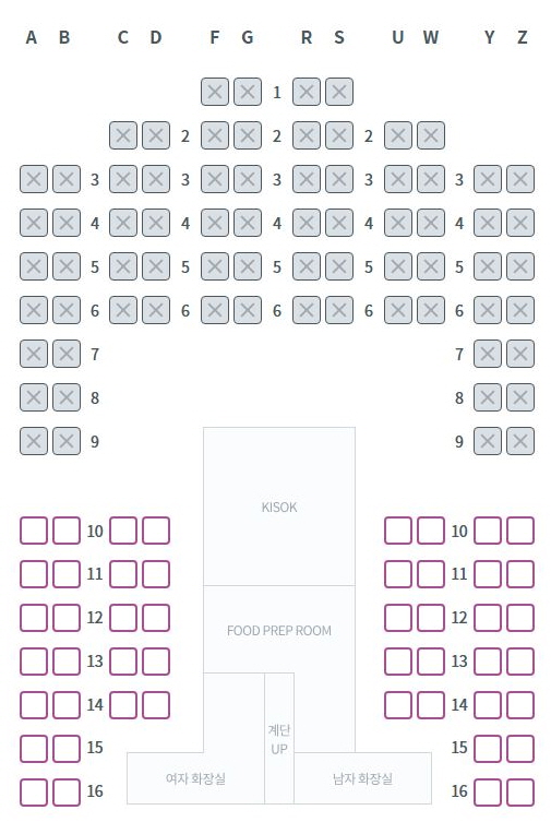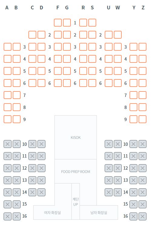 팬스타크루즈 그레이스호 좌석배치도 25.12.05 * 좌석지정 요청 전 예약한 좌석등급의 배치도를 확인바랍니다.일반석(스탠다드) - 1층 비즈니스석 - 2층 앞 일등석(퍼스트클래스) - 2층 뒤 목록으로